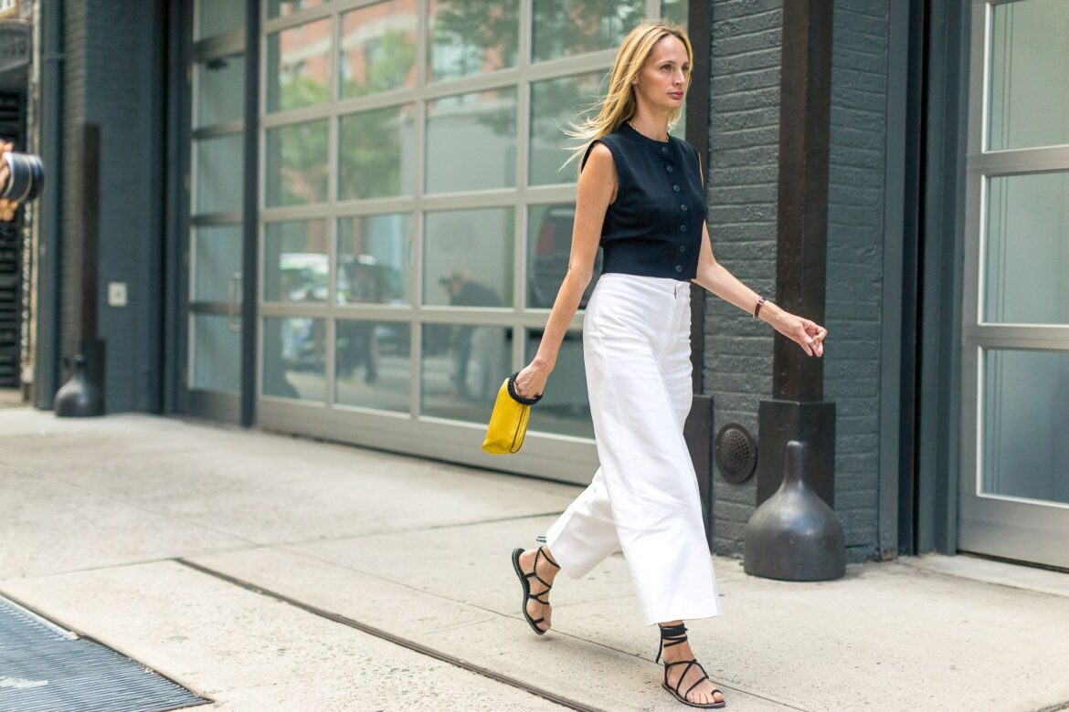 Os homens também têm algumas dicas. Boas calças chino (calças de sarja de algodão) em cores neutras são peças essenciais no guarda-roupa. Elas podem ser usadas com uma camisa polo para um look casual, com camisa e blazer para o trabalho e até com bermudas para uma opção mais elegante (sim, essa combinação está na moda, se você escolher o comprimento certo). Combine-as com um bom par de sandálias de couro (por exemplo, a Havaianas lançou colaborações com designers) e tênis brancos. E esqueça meias com sandálias — essa é uma tendência contrária há vários anos. Em vez de meias, use palmilhas absorventes ou um spray específico para calçados.